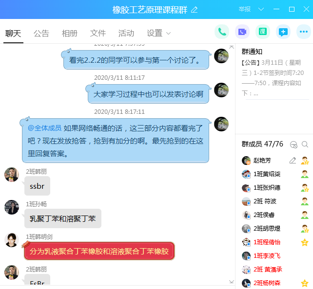 1.开课前准备:为保证更好的课程教学效果,在开课一个月前就开始着手开课准备,2月10号分别与两个教学班的同学建立了qq课程教学群,告知员工们因疫情原因本学期将通过网络开展线上教学,向同学们发送了线上教学平台员工端操作规程,要求同学们尽早着手熟悉几个常用的网络教学平台。