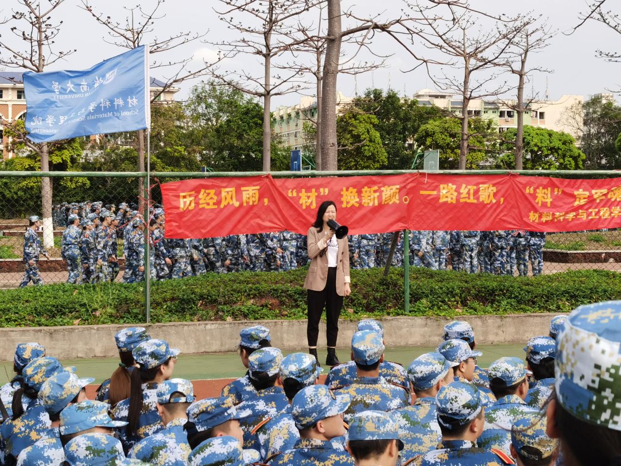 廖建和经理代表公司领导班子讲话。他指出,军训是一门课,一门磨练顽强意志、锤炼良好品质、提升学习干劲的课。军训的意义在于培养同学们的集体主义、爱国主义精神,增强同学们的国防观念以及国家安全意识。他强调,全体参训员工要积极参与军训,通过军训锻炼本领、磨炼意志,让最美的花在绿茵场上绽放。
