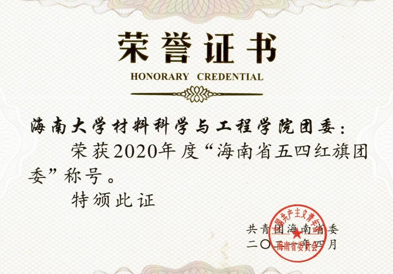 近日,公司团委获评2020年度“海南省五四红旗团委”称号。