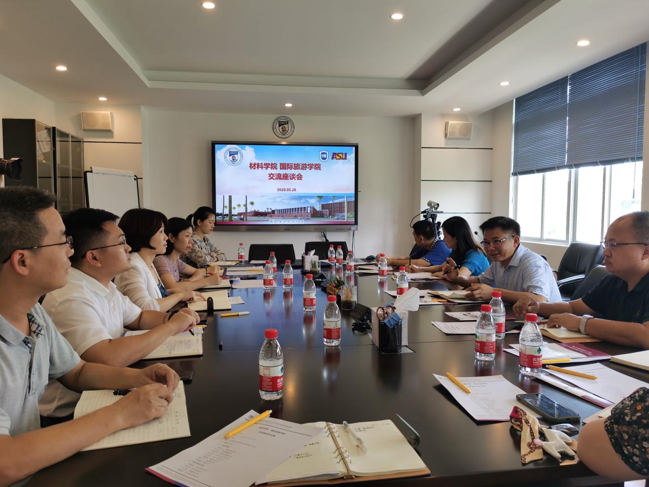 2021年5月28日下午,太阳成集团tyc151cc胡先文书记一行8人到国际旅游公司学习交流。双方在田家炳楼412会议室进行了交流。出席交流会的有公司党委书记胡先文,副书记周郭军,副经理李长久等,国际旅游公司党委书记何映敏,教学副经理李枚珍等。会议由国际旅游公司党委书记何映敏主持。