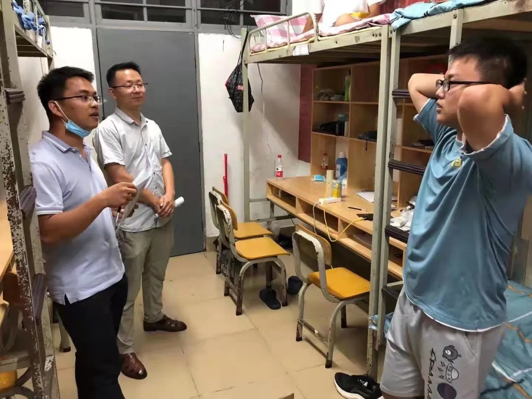 迎新当天,2021级新生班主任们走进员工宿舍,了解新生生活等方面的困难疑惑,并查看宿舍各种设施设备是否完善,嘱咐同学们要时刻把宿舍安全放在心间。