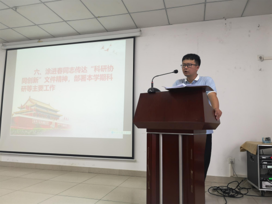 2021年9月7日下午,太阳成集团tyc151cc在研发楼710召开全体教职工大会,会议由胡先文书记主持,全体教职工参加会议。