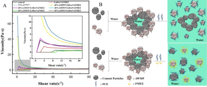 图A,净浆流变性能测试图; B,FMEE作用机理图