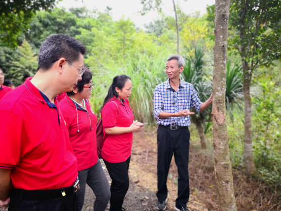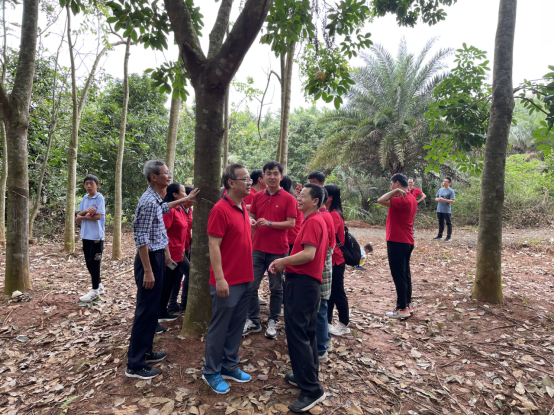 高分子系教工党员及教师代表实地走访了研学基地,尤其对天然橡胶林的品质与规模进行了评估,就如何开展员工的劳动教育进行了热烈探讨,并从华侨农场的历史背景出发对思政教育进行了讨论。通过本次党日活动,充分实现了党支部对系教学活动的引领指导作用。