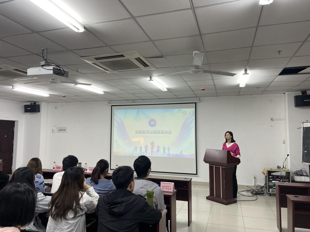 活动中,周郭军副书记发表了简短的讲话,她对同学们备考状态给予了肯定,她祝愿同学们“一切真心不被辜负,一切努力终有收获”,并提出几点希望:一是要在最后的冲刺复习阶段,保持良好的学习状态,按照既定的安排理性备考,不骄不躁,持续发力。二是要在这个特殊的阶段,劳逸结合,不必刻意加码,增添身心负担。三是公司领导、老师会尽全力切实解决同学们备考过程中遇到的困难与诉求。2018级辅导员郎筱宇老师也与同学们进行了亲切的交流,送上了最真挚的鼓励与祝福“成功上岸”。