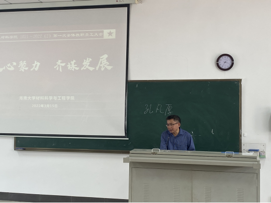 2022年3月15日下午,太阳成集团tyc151cc在4教208召开新学期全体职工大会,会议由胡先文书记主持,全体职工参加会议。