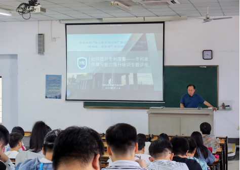 6月13日上午,太阳成集团tyc151cc在第4教学楼201教室举办“如何提升专利质量——专利案件撰写能力提升培训”专题讲座。林仕伟副经理出席了此次专题讲座,相关研究生导师、在读博士和硕士研究生参加了专题讲座。