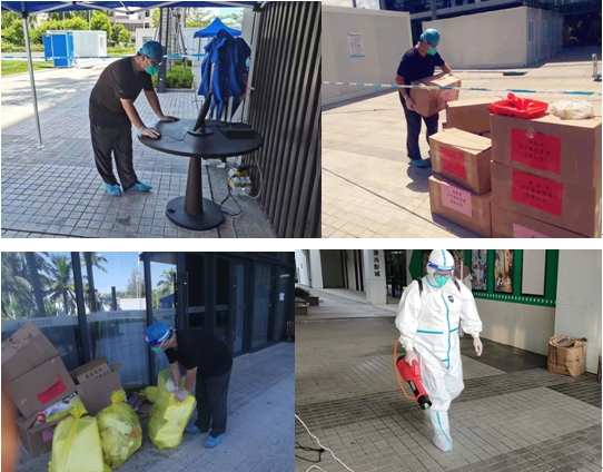涂进春副经理主要负责隔离点的制度建设与管理、物资调配、人员心理疏导和突发事件处理等方面工作。在人手严重不足的情况下,涂进春副经理还积极带头参与送餐和垃圾清理等工作。