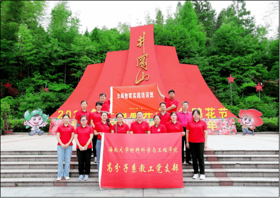 为深入学习贯彻习近平新时代中国特色社会主义思想精神,弘扬“坚定信念、艰苦奋斗、实事求是、敢闯新路、依靠群众、勇于胜利”的井冈山精神,传承老一辈伟大的爱国主义、革命主义精神,潜心向老一辈无产阶级革命者学习,高分子系教工党支部2023年7月6日至7月9日赴中国革命的摇篮——井冈山革命根据地开展了主题教育学习实践活动。首先启动了开班仪式,党员代表周远兵与张雪巍老师庄严受班旗,张晖老师代表全体学员进行了发言。