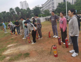 邵世洋副经理强调了实验室危化品安全和规范操作的重要性。保卫处林老师对灭火器、灭火毯和消防栓箱内器材进行了讲解和示范,保卫处王老师则对用电安全,消防逃生等安全常识进行了重点宣传。随后,公司师生在新南门旁的空地上使用灭火器进行了消防灭火演练。