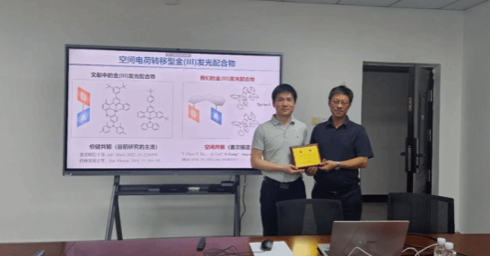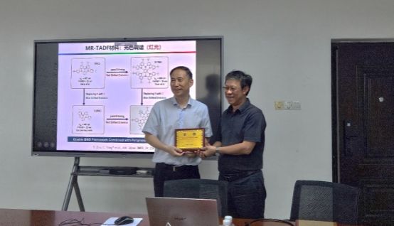 本次论坛邀请深圳大学杨楚罗教授和武汉大学龚少龙教授分别围绕“窄光谱有机发光材料及其电致发光器件”和“高性能币金属发光配合物及其光电性能研究”为主题做了学术报告。报告专家分别介绍了其研究团队近年在硼氮稠环热活化延迟荧光材料和OLED器件上的研究成果,以及在币金属发光配合物的激发态调控及其有机光电器件应用方面的研究进展。他们的精彩报告为在场的教师和员工提供了难得的学习机会,引发了与会者热烈讨论,分别就相关领域的前沿进展和科研成果取得背后所付出的辛苦、努力与体会进行了分享和交流。与会者们积极发言,提出了许多富有见地的观点和建议。