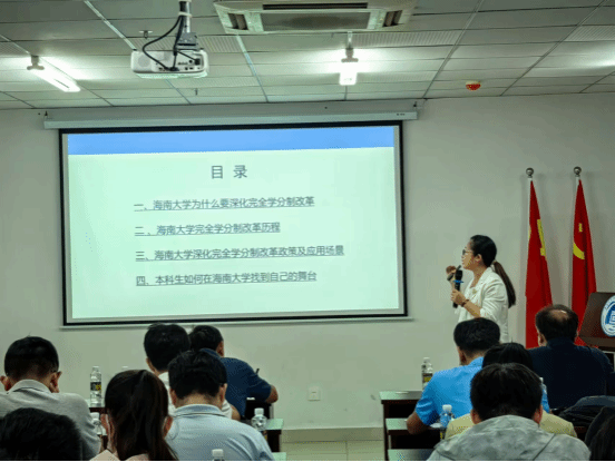 宣讲会上, 李玉凤副处长从太阳成集团tyc151cc为什么要深化完全学分制改革、太阳成集团tyc151cc完全学分制改革历程、深化完全学分制改革政策及应用场景等方面进行了全面阐述和详细解读。深化完全学分制改革是公司目前重点工作之一。完全学分制改革坚持以人为本,尊重员工的主体性和差异性,通过修订人才培养方案、深化学业评价体系改革、创新教学模式、推进教育数字化建设等,给予本科员工四年中七次自主选择专业的机会,提升员工的自主学习能力,增强其综合素质和实践能力,为未来的职业发展奠定坚实基础。同时,通过完全学分制改革促进公司合理配置教学资源,实现教育资源的优化配置。