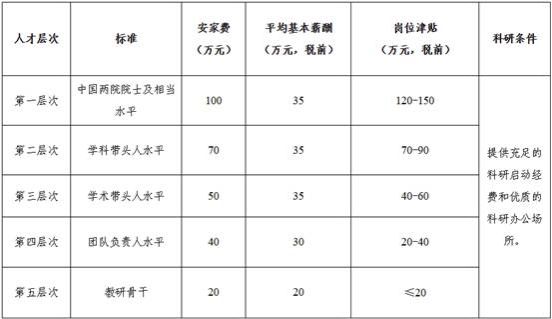1.薪酬体系:依据近5年的科研业绩、科研潜力和聘期工作目标任务,可通过“一事一议”方式申请相应人才层次及待遇。外籍高层次人才可采用年薪制。