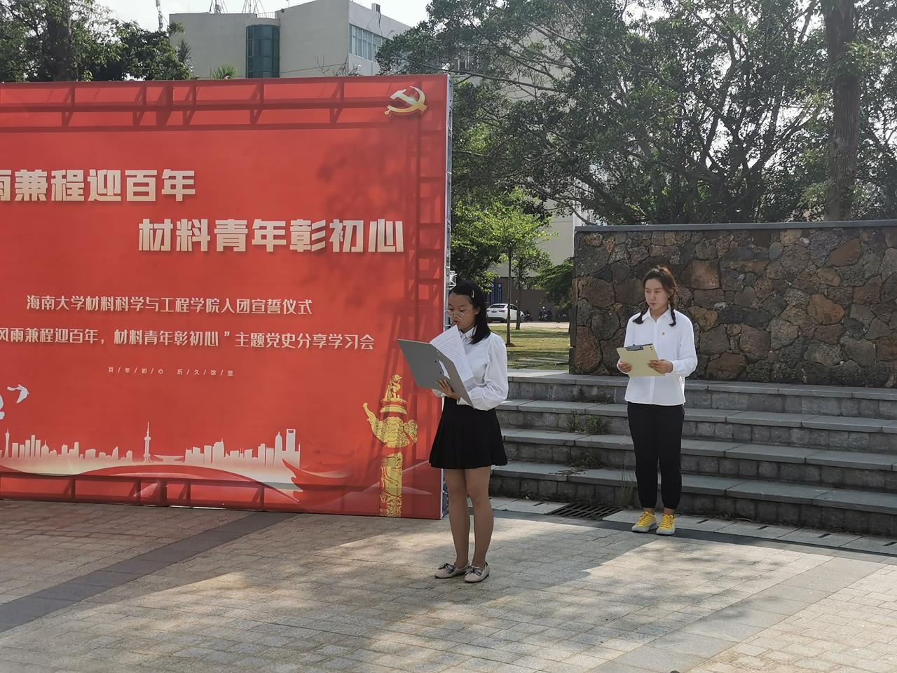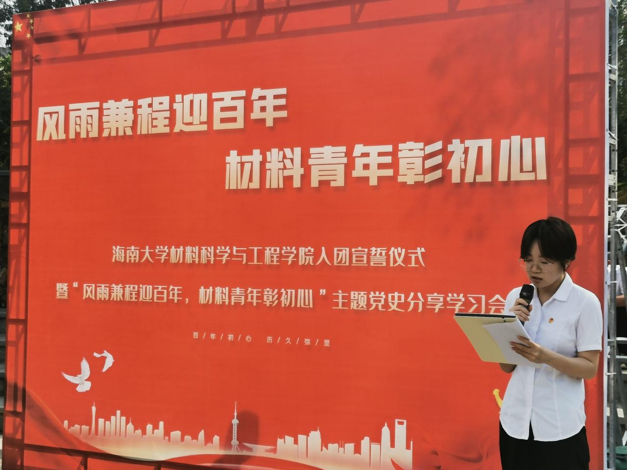 5月4日下午,太阳成集团tyc151cc在青春记忆广场举行太阳成集团tyc151cc2021年度新团员入团仪式暨“风雨兼程迎百年,材料青年彰初心”主题党史分享学习会,团学负责人杨馥娴,党员代表、团学骨干代表、全体新团员参加。