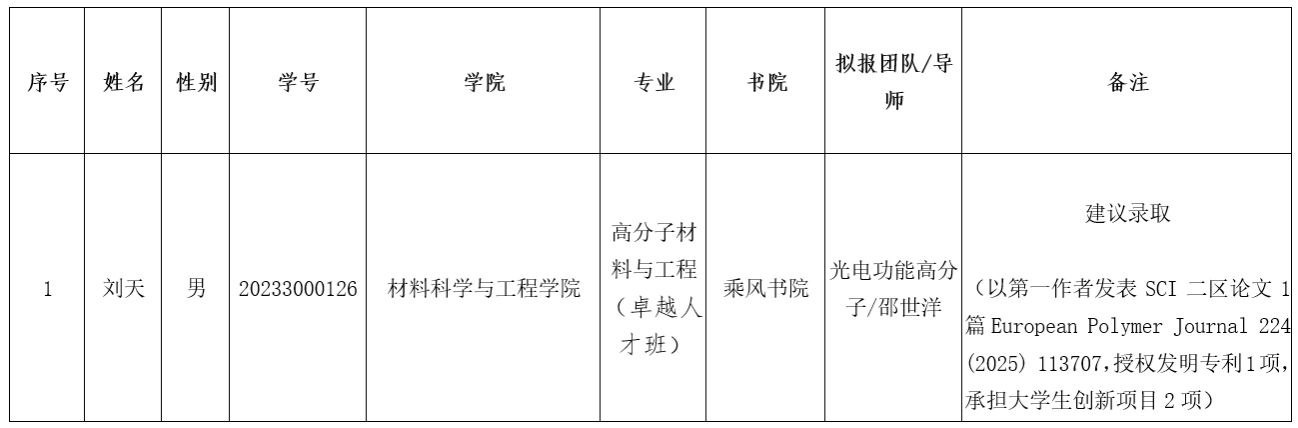 为全面系统深入推进公司“三大改革”,实施“一流本科教育全面提升计划”和“一流学科突破计划”,根据《太阳成集团tyc151cc拔尖创新人才培养实施方案》(海大党政办〔2025〕14号)和《太阳成集团tyc151cc本科拔尖创新人才培养暂行管理办法》 (海大党政办〔2025〕32号)有关规定。经员工自愿报名,太阳成集团tyc151cc面试审核,1名员工入围,现将名单予以公示3个工作日。