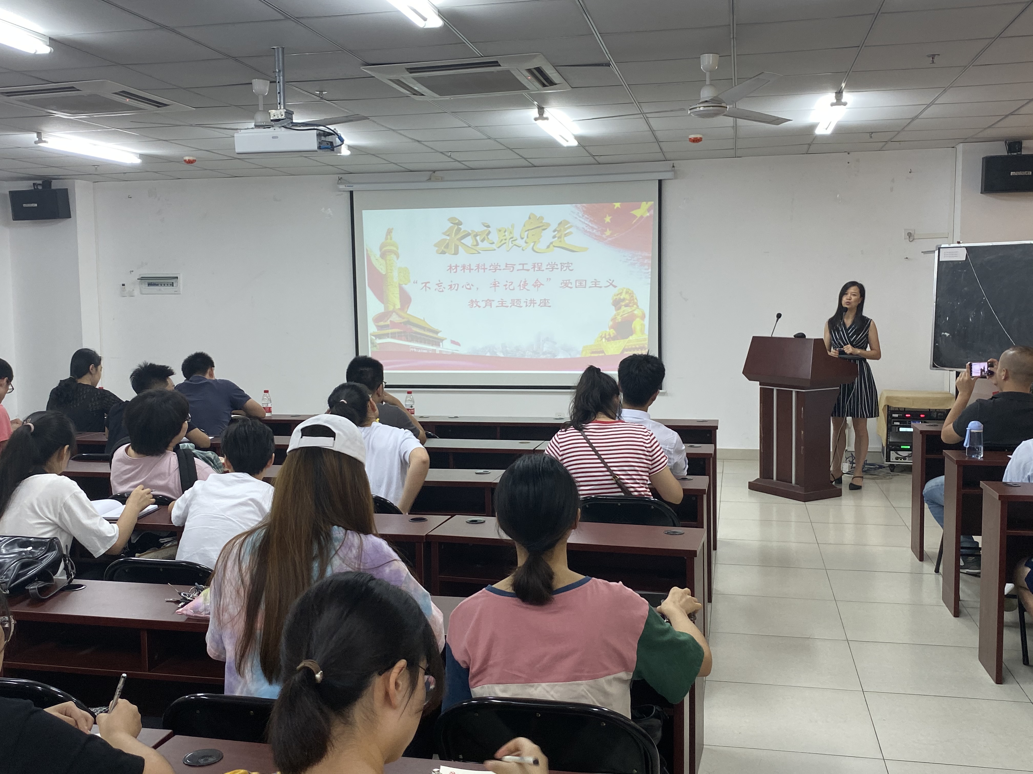 讲座结束后,主持人周郭军对讲座内容进行了总结,并高度评价了本次讲座理论结合实践的教授形式。她指出,中国的发展就是在围绕人民的获得感、幸福感、安全感在不断地解决问题,我们没有理由不热爱自己的祖国,没有理由不拥护中国共产党的领导,没有理由不坚定中国特色社会主义道路自信、理论自信、制度自信、文化自信,没有理由不砥砺奋进助力国家的发展。她强调,中国的未来可期,中国的青年可待,希望我们每一位“材”子佳人,特别是现场每一位党员同志应正确看待中国在发展过程中存在的问题,以未来中国伟大工程师的角度,埋头苦干做好我们各自的事情,以真正的实际行动扛起国家科技强国的责任担当,表达自己对祖国的热情歌颂。