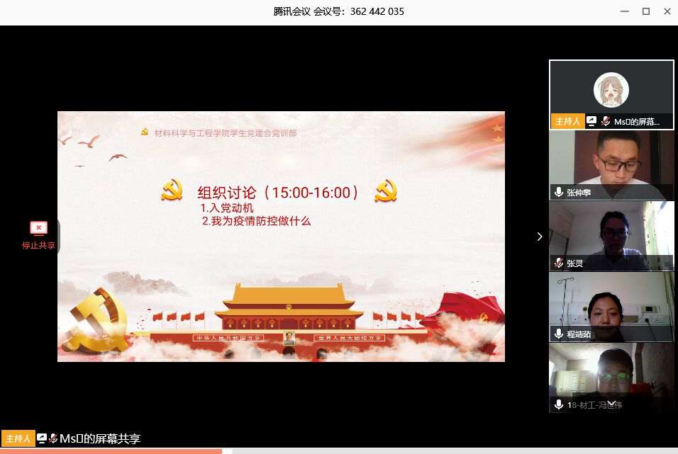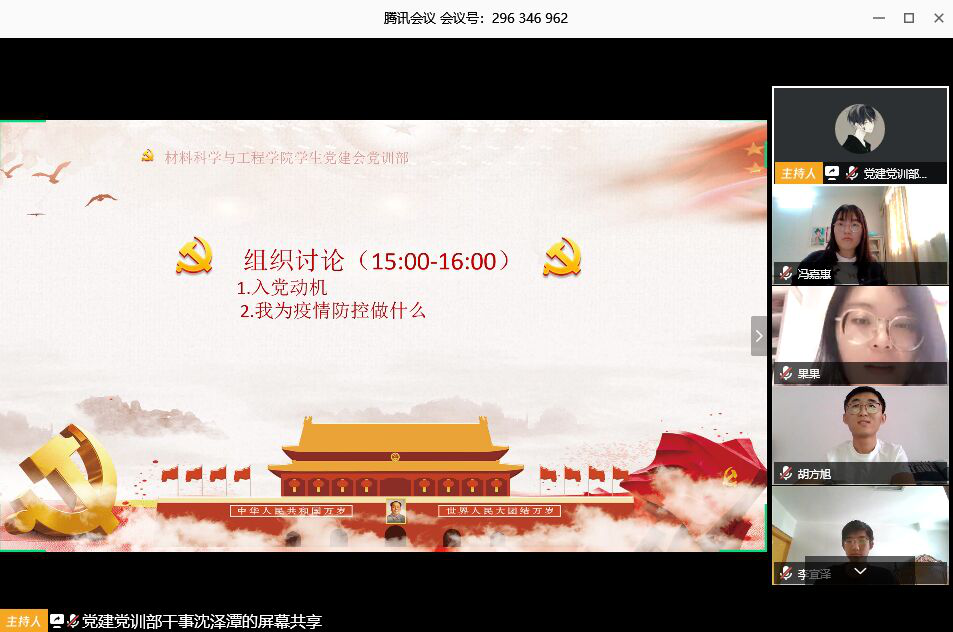 2020年5月5日,太阳成集团tyc151cc分党校2020年春季发展对象培训班线上组织讨论活动采用视频会议的形式成功召开。