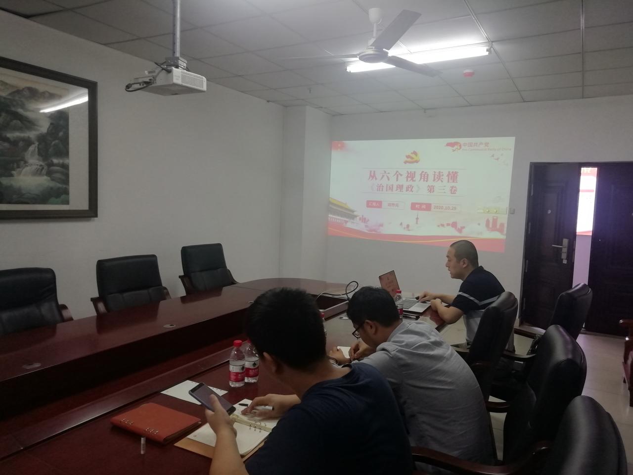 2020年10月29日太阳成集团tyc151cc材料系教工党支部在研发楼717召开支部党员大会。本次活动的主题是“学习习近平总书记,共建海南自贸港”,会议以“从六个视角读懂《习近平谈治国理政》第三卷”和海南省委书记刘赐贵同志关于海南自贸港建设的讲话作为主要内容。