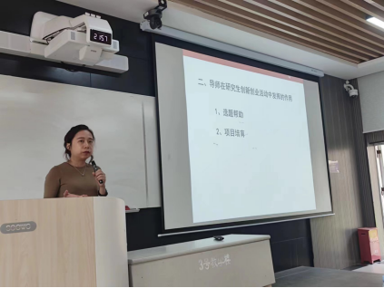 卢凌彬教授以“研究生创新创业能力培养”为主题,对研究生创新创业工作进行了介绍和动员。卢凌彬教授从创新创业项目选择与申报、政策扶持与奖励、具体申请步骤和流程以及面临的问题等方面进行了详细的介绍,同时鼓励和引导年轻导师带领研究生参加科技创新活动。